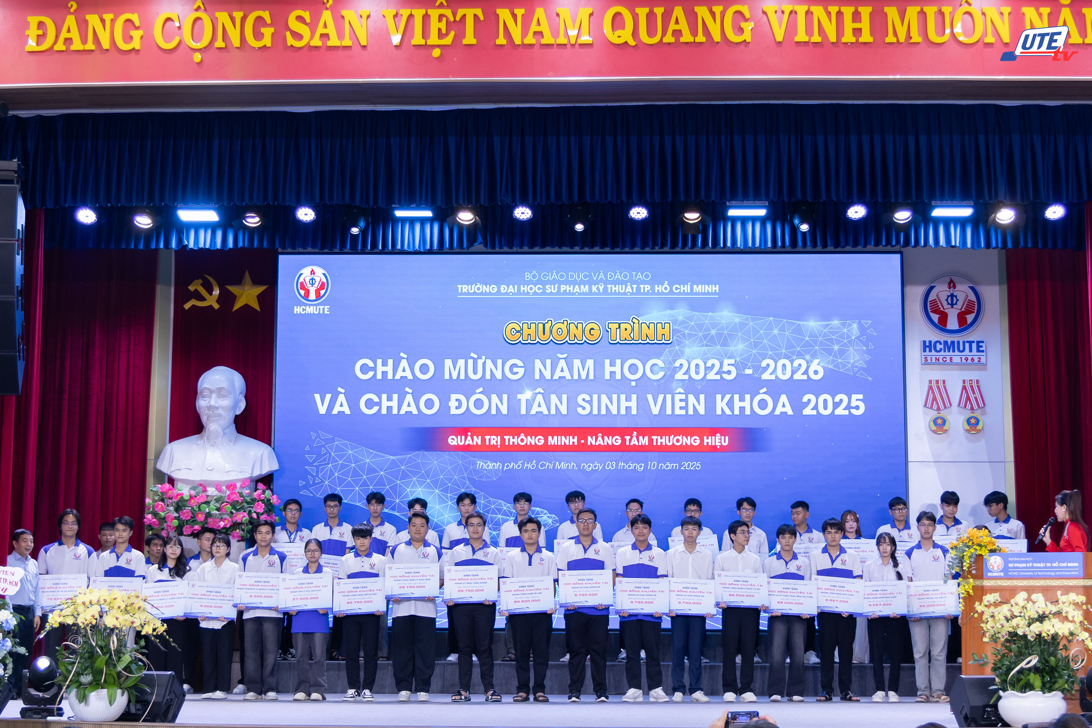 Chiều ngày 03/10/2025, Trường Đại học Sư phạm Kỹ thuật TP.HCM (HCMUTE) đã tổ chức chương trình Chào mừng năm học 2025-2026 với chủ đề “Quản trị thông minh – Nâng tầm thương hiệu” và Chào đón Tân sinh viên khóa 2025. Chương trình còn mang ý nghĩa đặc biệt khi chào đón các em tân sinh viên nhân dịp kỷ niệm 63 năm ngày thành lập Trường (05/10/1962 - 05/10/2025).