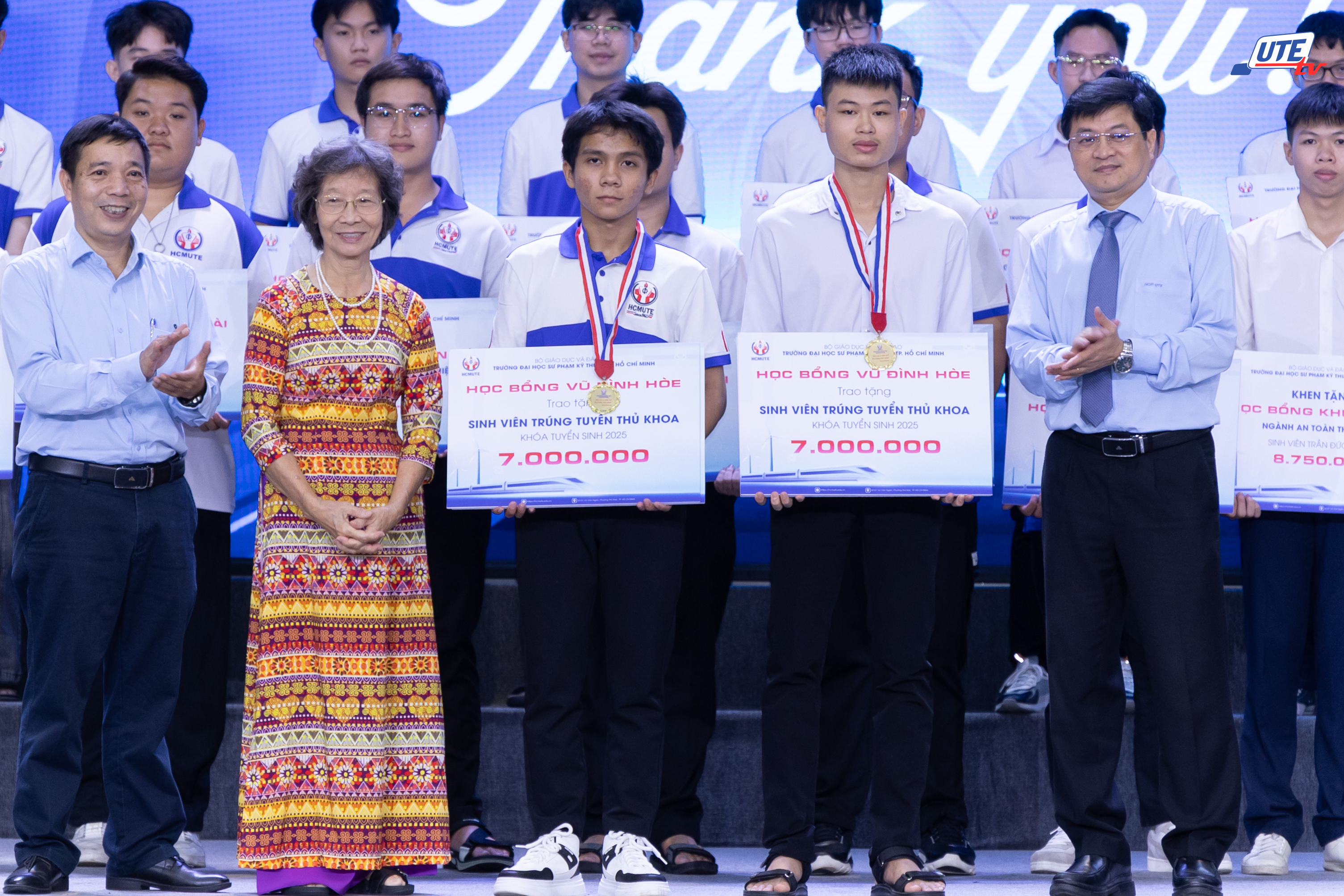 Bên cạnh đó, hai tân sinh viên có điểm thi Tốt nghiệp THPT cao nhất năm tuyển sinh 2025 là sinh viên Võ Thành Tiên (28.5 điểm, ngành Công nghệ kỹ thuật Cơ Điện tử) và sinh viên Đoàn Võ Thanh Nhật (28.5 điểm, ngành Công nghệ kỹ thuật Điều khiển và Tự động hóa). Với thành tích nổi bật, cả hai đã nhận được 02 suất học bổng khuyến học từ gia đình GS. Vũ Đình Hòe – Cố Bộ trưởng Bộ Quốc gia Giáo dục trong Chính phủ đầu tiên của nước Việt Nam Dân chủ Cộng hòa (nay là Bộ GD&ĐT), mỗi suất trị giá 07 triệu đồng.