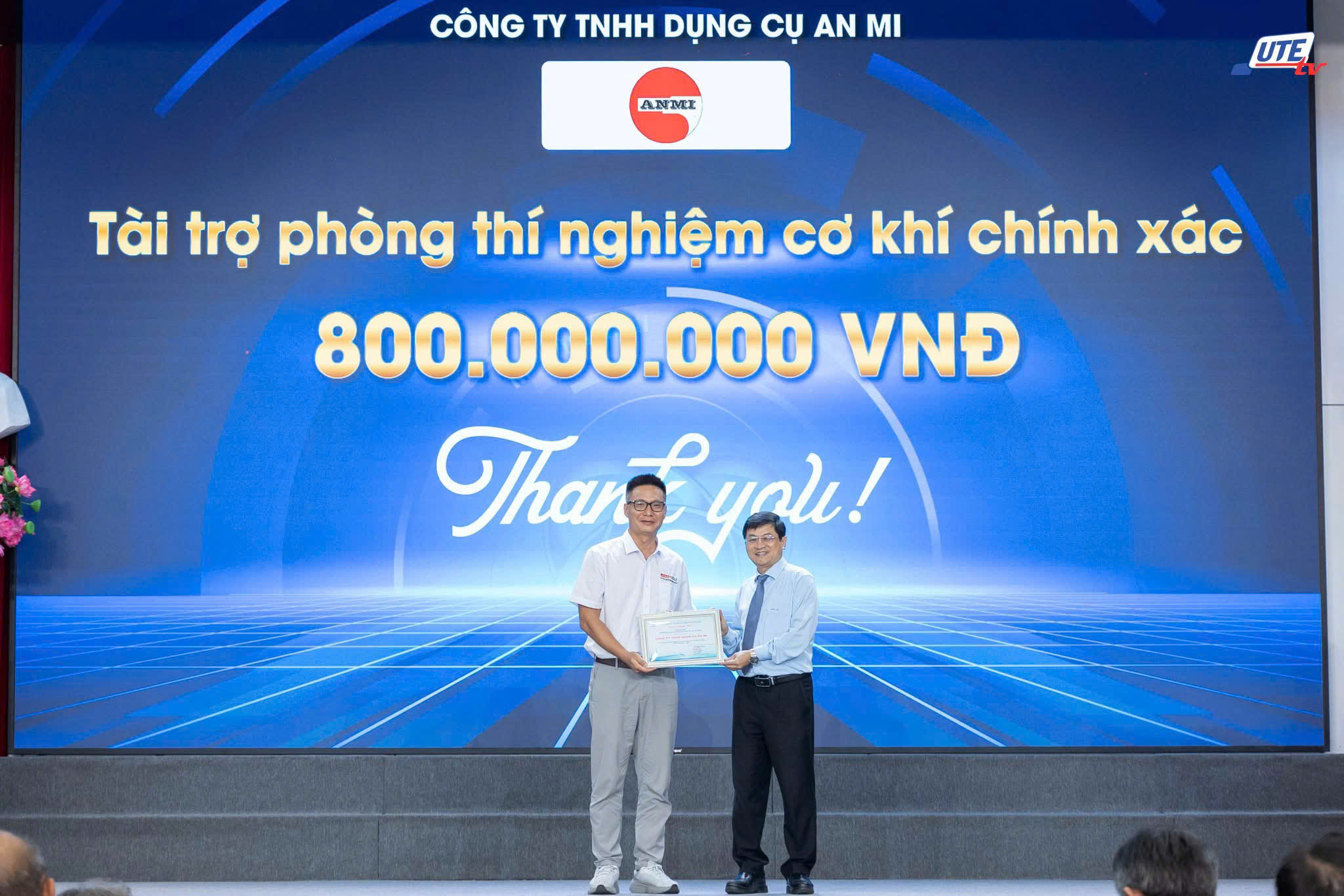 Chỉ trong một thời gian ngắn vận động, Nhà trường đã nhận được sự tài trợ cho Quỹ học bổng, các cuộc thi, sân chơi học thuật, chương trình thực tập sinh, trang thiết bị và nhiều phần mềm, tài khoản học tập với tổng giá trị hơn 13 tỷ đồng. Đây là nguồn động viên to lớn, tiếp thêm sức mạnh để HCMUTE vững bước trong hành trình phát triển. Để bày tỏ lòng tri ân, đại diện Nhà trường đã trao Thư cảm ơn đến các đơn vị tài trợ đã đồng hành cùng HCMUTE trong năm học mới, trong đó khoa CKM có các đơn vị tài trợ các phòng thí nghiệm.